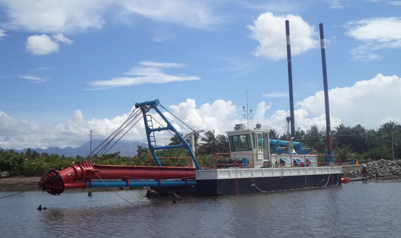 借助大的泵力,輸送到泥沙物料堆積場,它的挖泥、運泥、卸泥等工作過程,可以連續完成,全長是指船體長度加上絞吸架伸出長度之和。挖泥泵由主機直接帶動,鉸刀頭由電機或液壓機構帶動。