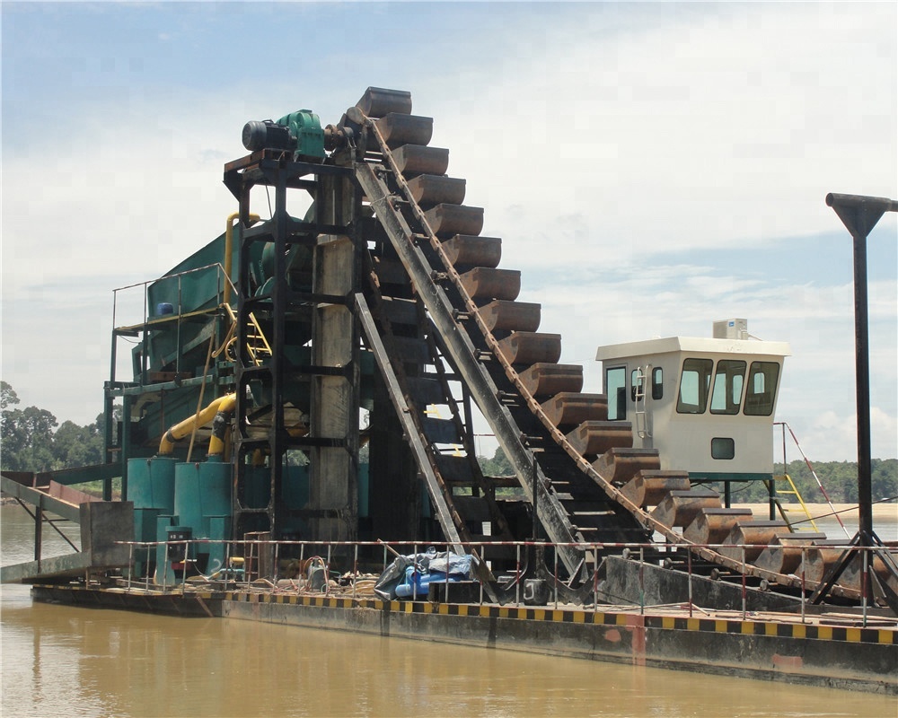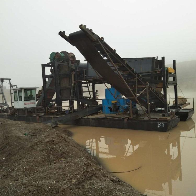 挖斗淘金船是本公司主打產(chǎn)品之一,本設(shè)備是鏈斗式的挖掘機(jī)械,可同時完成采掘、篩選、清洗、分級等工藝。,配備動力為柴油機(jī)或發(fā)電機(jī)組,能進(jìn)行多沙石料的篩分、沙金洗選等工作。